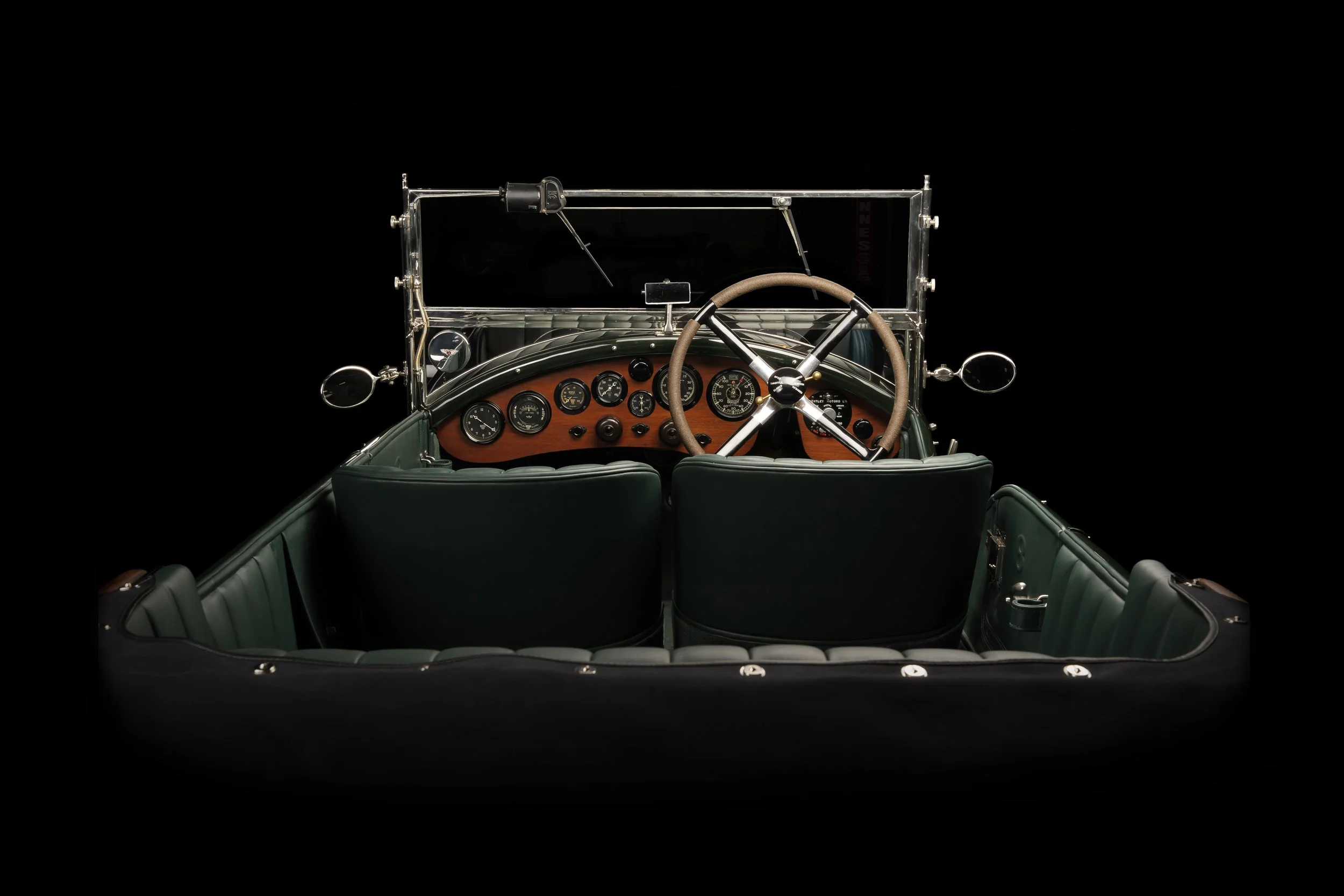The chassis and body were refinished in Brewster Green cellulose paint using traditional methods, hand-polished to a period-correct finish. Inside, a new mahogany dashboard was made, instruments refurbished, and trim completed. The car is now fully restored, tested, and back on the road, combining originality, usability, and historic integrity.